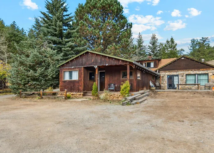 Situated a 10-minute drive from Wild Basin Lodge, the 0-bedroom 5 Bd Cabin W Private Hot Tub Villa features a sunny patio with views of the mountain. Featuring patio views, the property invites guests to visit Chapel on the Rock, located a 15-minute drive away.